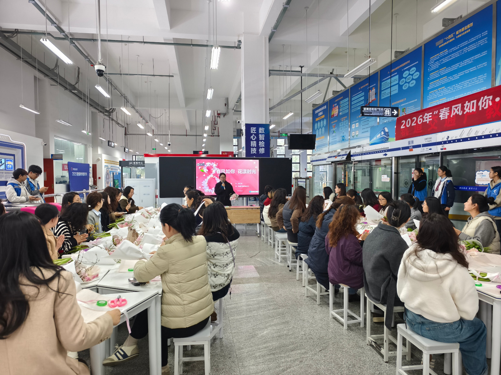 为落实校工会 “奋进‘十五五’ 巾帼建新功” 庆祝 “三八” 国际劳动妇女节系列活动部署,3月6日上午,由校工会主办、轨道交通学院分工会承办的 “春风如你・花漾时光” 花艺活动,在轨道综合实训中心温情启幕。全校女教职工齐聚一堂,以花为媒共庆佳节,在指尖生花的美好时光里感悟生活之美,凝聚奋进力量。