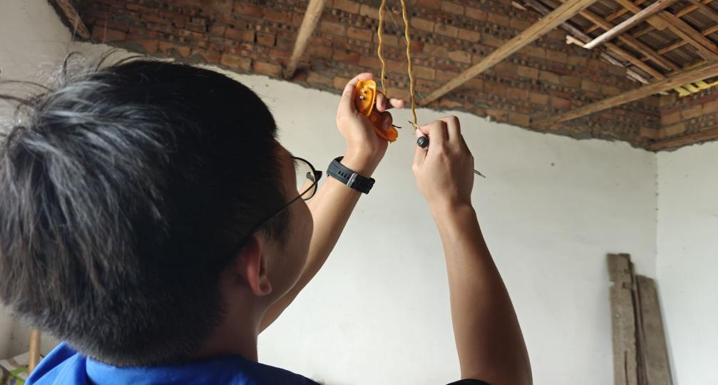 检修过程中,志愿者们不仅专注于解决实际问题,还细心地向老人们讲解用电安全知识。“湿手不能碰插座”“出门前要记得关掉电源总开关”……针对老人记忆力较差的特点,志愿者们用通俗易懂的语言反复叮嘱。“这些孩子太贴心了,不仅帮我修好了电路,还教我怎么安全用电,比亲人想得还周到。”独居的老人拉着志愿者的手,眼眶微微湿润。当天,志愿服务队共为村里4户五保户完成电路检修,更换老化插座4个、电线15米,排除短路、漏电等安全隐患6处。